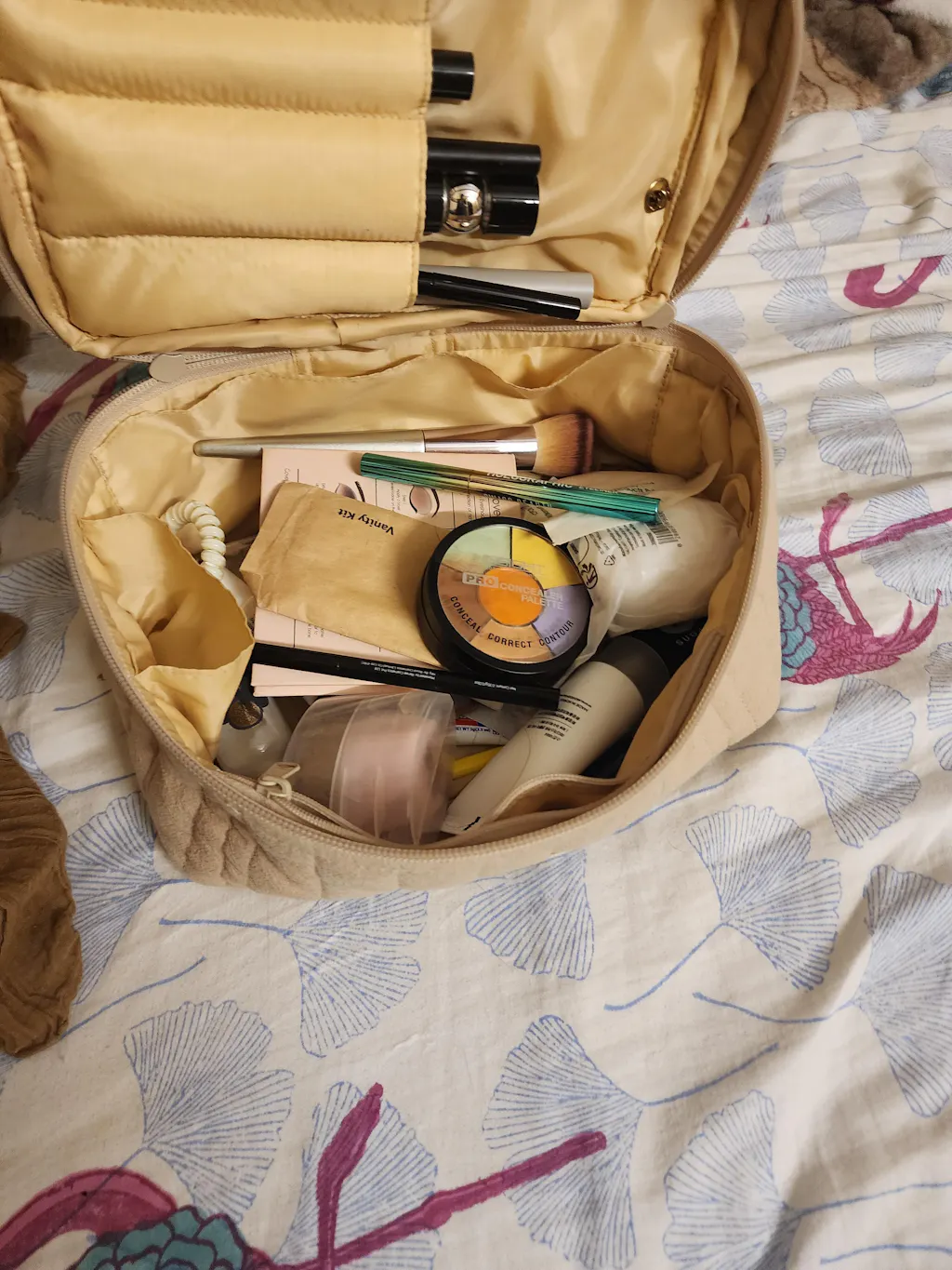- wipeable interior with nylon lining- 4 compartments on top for brushes- large compartment for palettes- zipper small pocket for liners- 2 side pocket for lip products- centre section for bigger/ face products