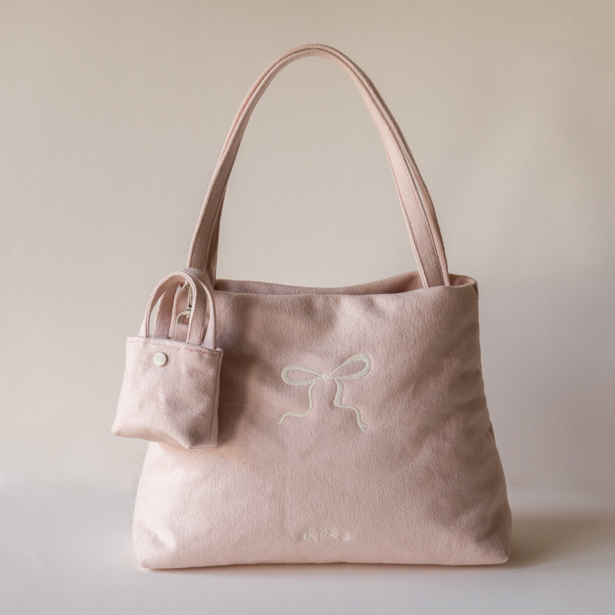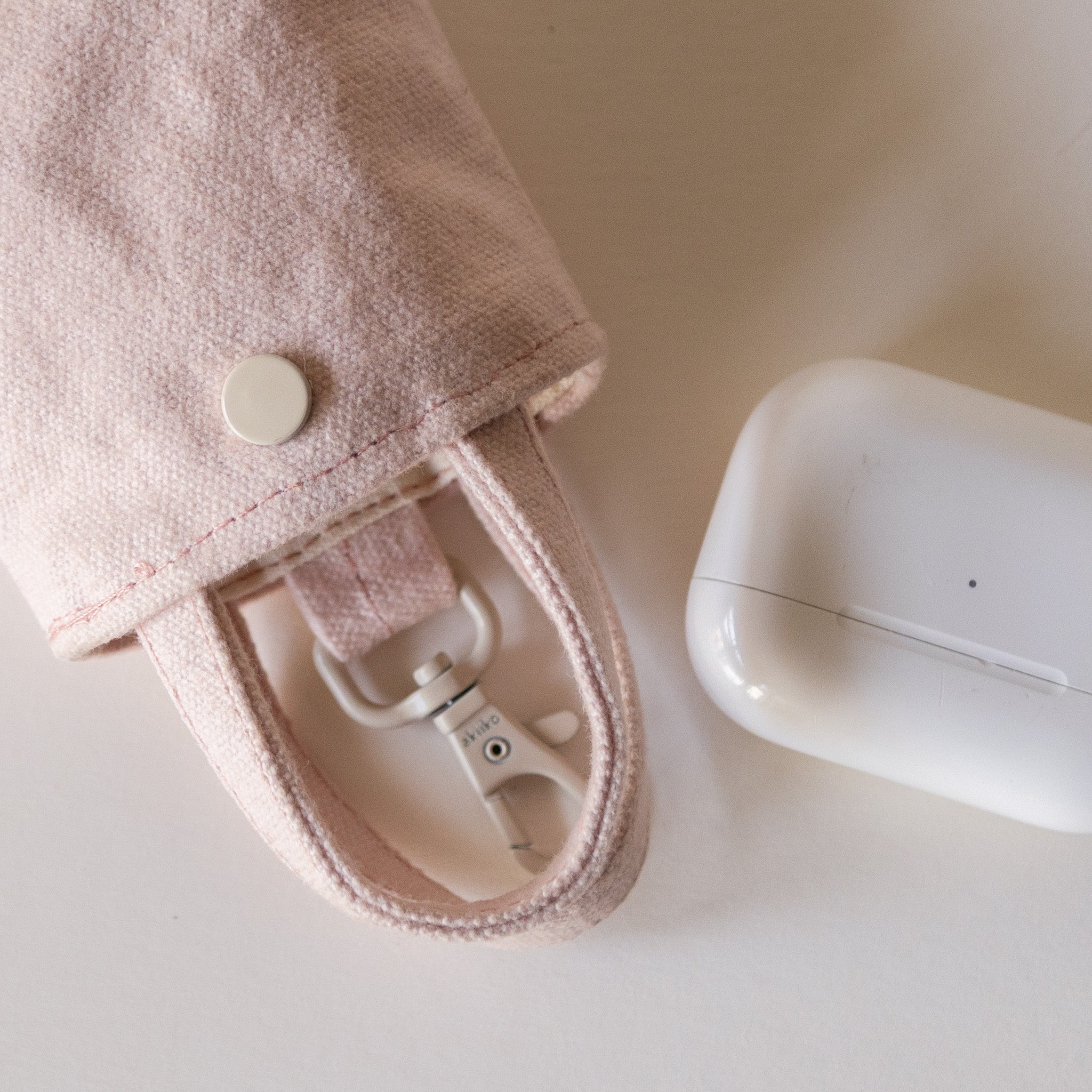 KEY FEATURES:-Brushed cotton canvas in Powder Pink-Soft, lightly padded, puffy feel-Mini sculpted silhouette-Matte aluminium dog hook hardware-Magnetic closure-Fits AirPods, mini lipsticks, coins, earrings & tiny essentials-Designed to clip onto totes, handbags & keyrings