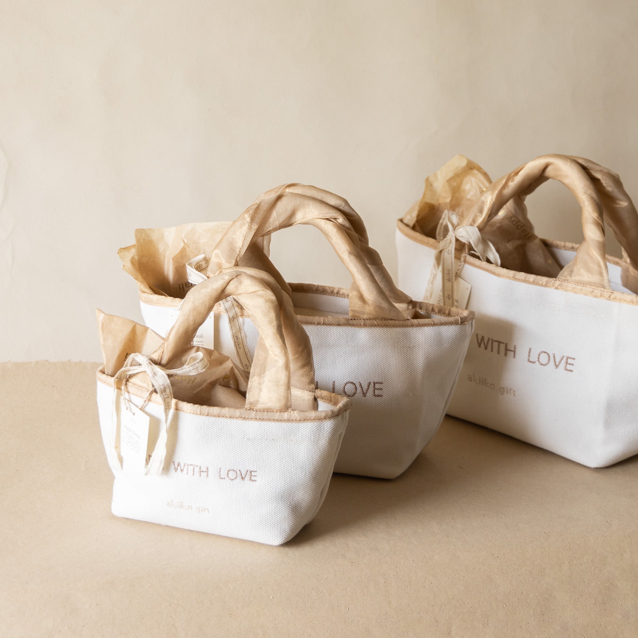 Gift with intention and elegance. This canvas basket is embroidered in rose gold with the words “Made With Love”, and finished with coordinating rose gold tissue handles.Designed to hold sweets, selfcare goodies, or curated treasures, it transforms every gift into a thoughtful, beautifully presented moment. Simple, elegant, and made for giving.