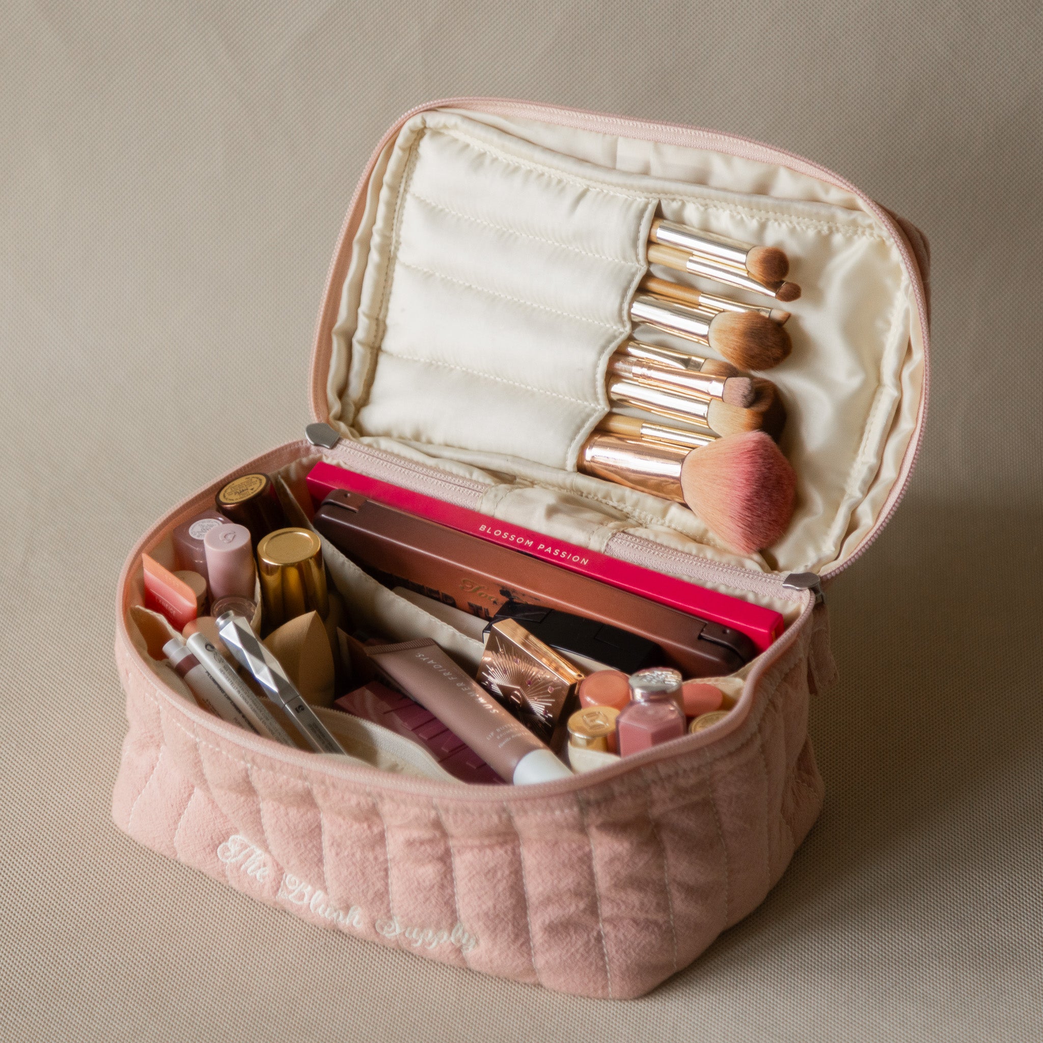 KEY FEATURES:"- wipeable interior with nylon lining- 4 compartments on top for brushes- large compartment for palettes- zipper small pocket for liners- 2 side pocket for lip products- centre section for bigger/ face products