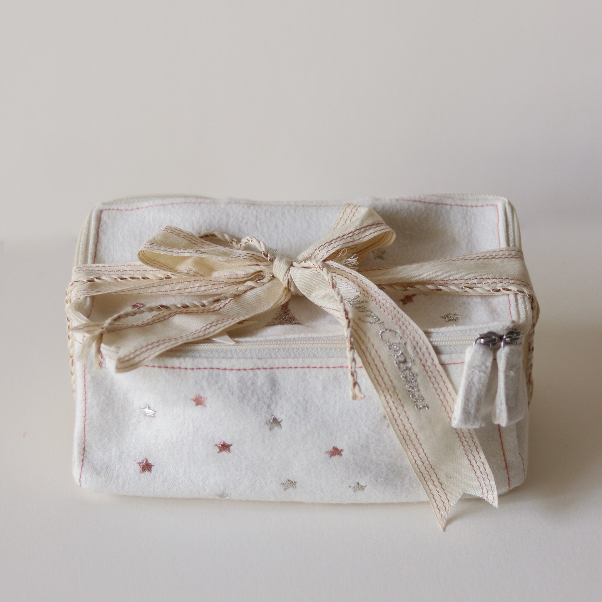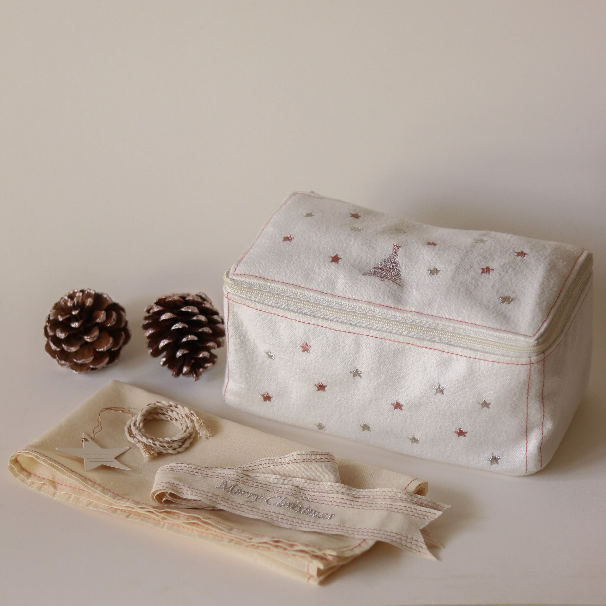 SET CONTENTS:1 Box Pouch ; 1 Sutachi wrap fabric ; 1 Merry christmas ribbon ; 1 Star message card with rope