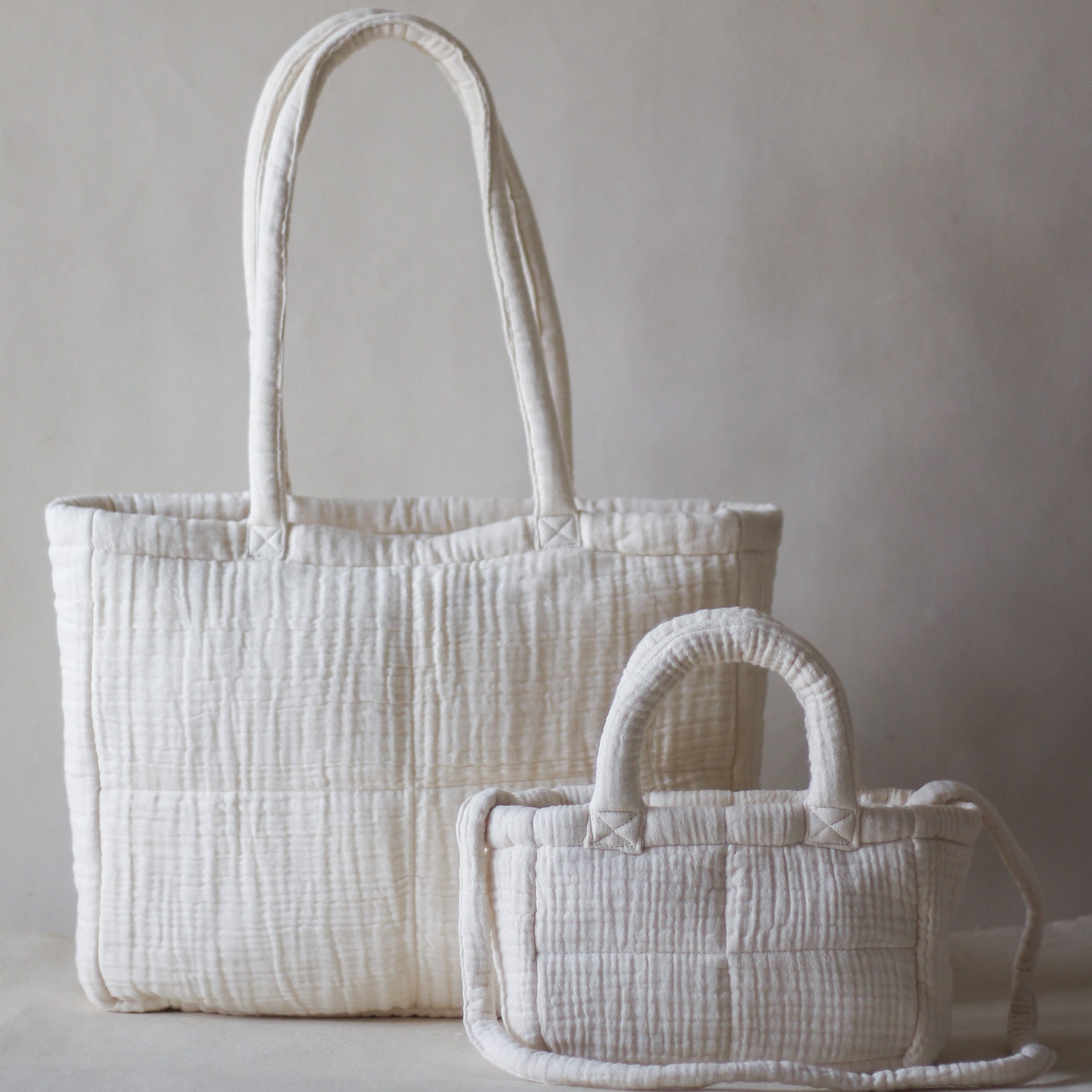 PRODUCT DESCRIPTION: The full-size Fyra Grid Tote steps in when you need space for your laptop, water bottle, gym clothes, and the “just in case” extras.The Fyra Mini is for the lighter moments - a wallet, keys, lip balm, and you’re out the door. Different capacities, same soft grid texture and easygoing charm.Together, they give you options without overthinking it. Grab the big one, the little one, or switch between both as your plans unfold.For: weekday commutes · quick coffee runs · weekend errands · light travel · days that go from busy to breezy